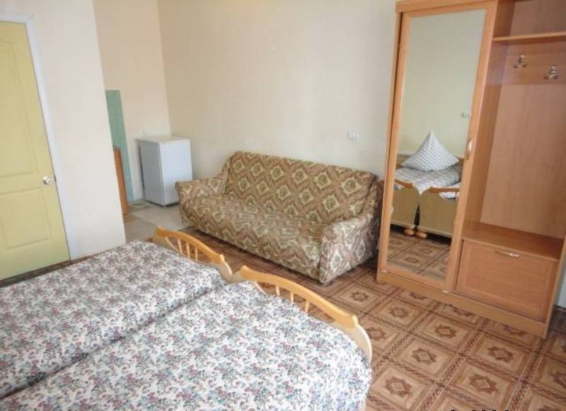 Размещение : Предлагаем 2х, 3х, 4х-местные комнаты с удобствами и 2х, 3х, 4х-местные комнаты эконом-класса. В каждой комнате с удобствами имеется душ, туалет (горячая и холодная вода круглосуточно), сплит-система, телевизор, холодильник, необходимый набор мебели. Комнаты эконом-класса - на 3 (мансардном) этаже. В комнатах сплит-системы, телевизоры, мебель. Санузел на этаже. Во дворе имеется летняя кухня с необходимым набором посуды для самостоятельного приготовления пищи, газовой плитой, двумя холодильниками и беседка-столовая с телевизором.
