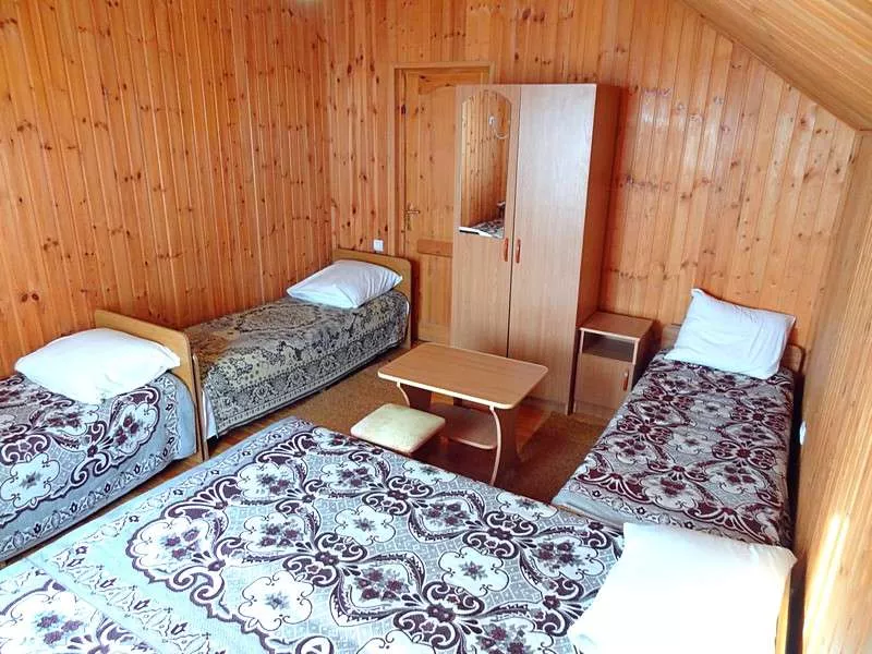 Размещение : Гостевой дом оснащён номерами с удобствами. 2-х, 3-х, 4-х и 5-ти местные номера. В каждом из них: одно- и двуспальные кровати, шкаф для одежды, телевизор, сплит-система, в номерах Стандарт и с удобствами на этаже дополнительно есть холодильник. Холодная и горячая вода круглосуточно.