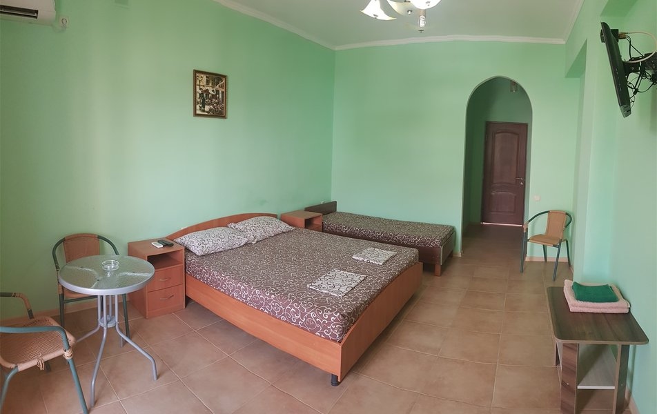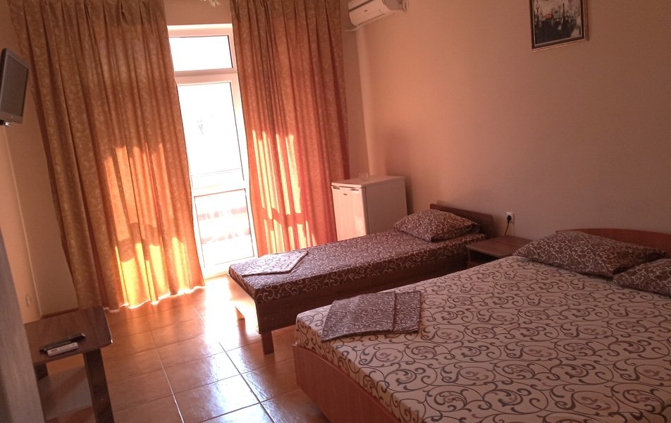Размещение: Четырехэтажный корпус занимает благоустроенную территорию в 600 метрах от моря. В распоряжении гостей двухместные и четырехместные номера со всеми удобствами. В каждом номере предусмотрен индивидуальный санузел, есть кондиционер, плазменный телевизор, электрочайник, в некоторых комнатах встречаются меблированные балконы.